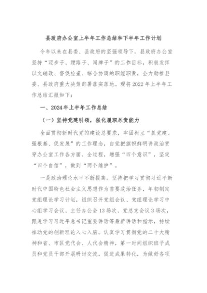 / 【七哥公文】2024年:县政府办公室上半年工作总结和下半年工作计划+更多免费公文+VX:QiGeGongWen2024