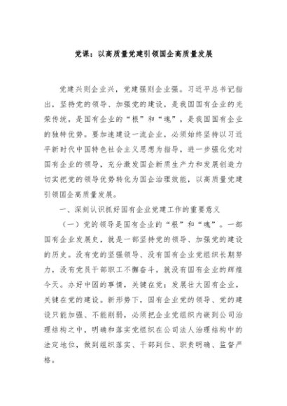 【七哥公文】2024年:党课:以高质量党建引领国企高质量发展+更多免费公文+VX:QiGeGongWen2024