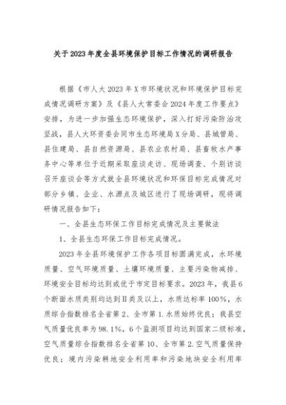 【七哥公文】2024年:关于2023年度全县环境保护目标工作情况的调研报告+更多免费公文+VX:QiGeGongWen2024