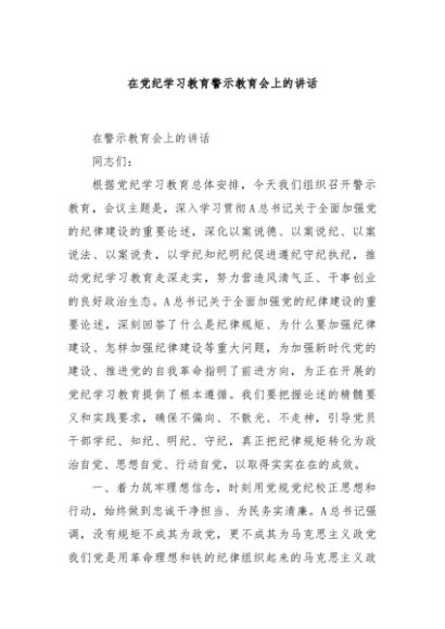 / 【七哥公文】2024年:在党纪学习教育警示教育会上的讲话+更多免费公文+VX:QiGeGongWen2024