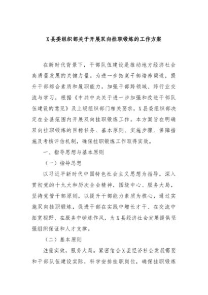 / 【七哥公文】2024年:X县委组织部关于开展双向挂职锻炼的工作方案+更多免费公文+VX:QiGeGongWen2024