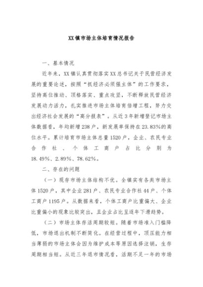 【七哥公文】2024年:XX镇市场主体培育情况报告+更多免费公文+VX:QiGeGongWen2024