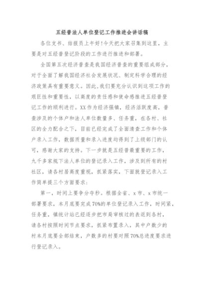 / 【七哥公文】2024年:五经普法人单位登记工作推进会讲话稿+更多免费公文+VX:QiGeGongWen2024