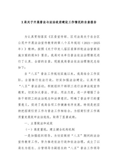 / 【七哥公文】2024年:X局关于开展普法与法治政府建设工作情况的自查报告+更多免费公文+VX:QiGeGongWen2024