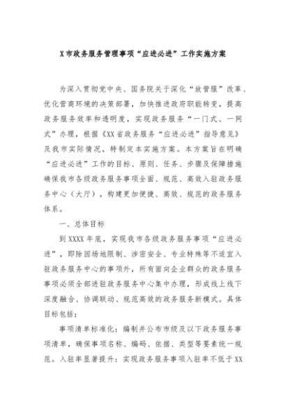 / 【七哥公文】2024年:X市政务服务管理事项“应进必进”工作实施方案+更多免费公文+VX:QiGeGongWen2024