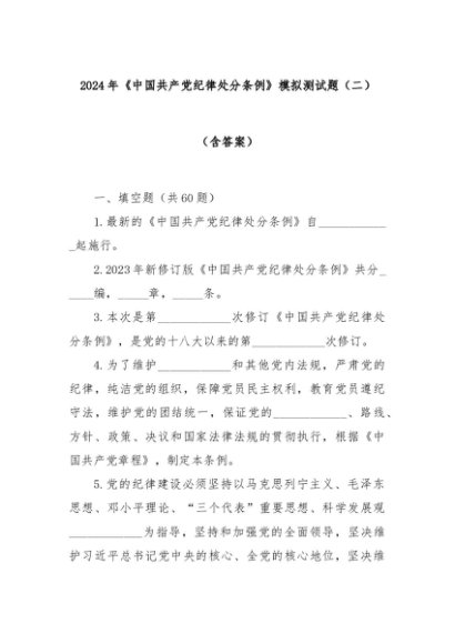 【七哥公文】2024年:2024年《中国共产党纪律处分条例》模拟测试题(二)(含答案)+更多免费公文+VX:QiGeGongWen2024