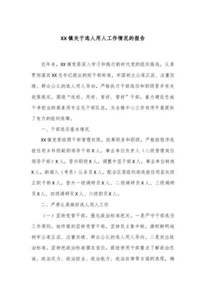 / 【七哥公文】2024年:XX镇关于选人用人工作情况的报告+更多免费公文+VX:QiGeGongWen2024