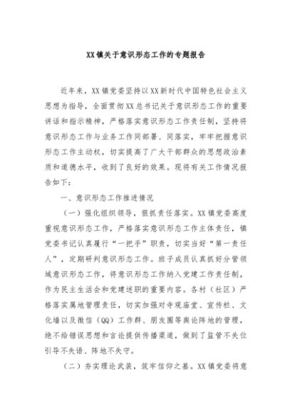 / 【七哥公文】2024年:XX镇关于意识形态工作的专题报告+更多免费公文+VX:QiGeGongWen2024