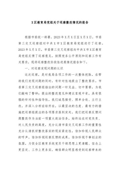 / 【七哥公文】2024年:X区教育局党组关于巡察整改情况的报告+更多免费公文+VX:QiGeGongWen2024