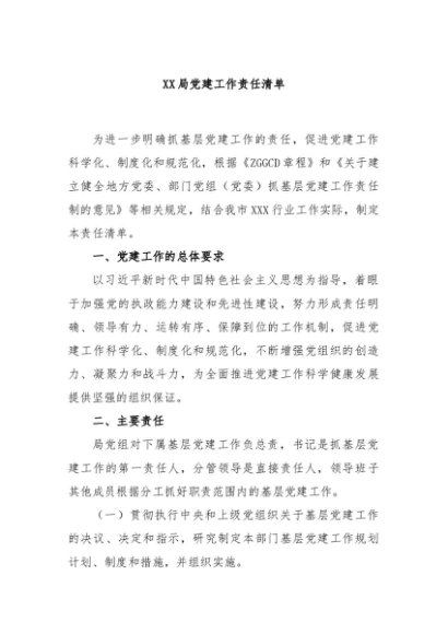 【七哥公文】2024年:XX局党建工作责任清单+更多免费公文+VX:QiGeGongWen2024
