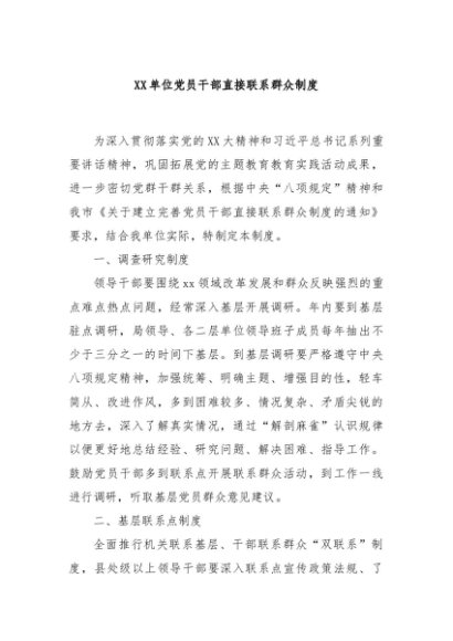 【七哥公文】2024年:XX单位党员干部直接联系群众制度+更多免费公文+VX:QiGeGongWen2024