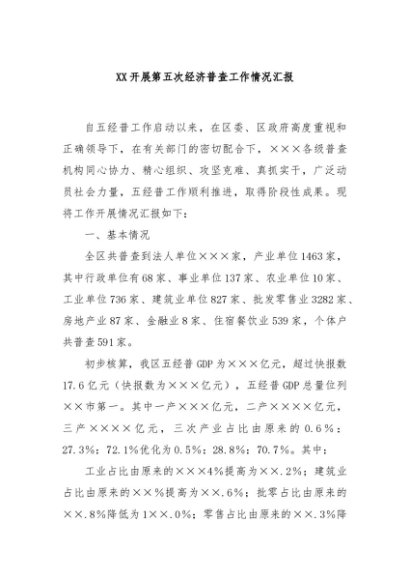 / 【七哥公文】2024年:XX开展第五次经济普查工作情况汇报+更多免费公文+VX:QiGeGongWen2024