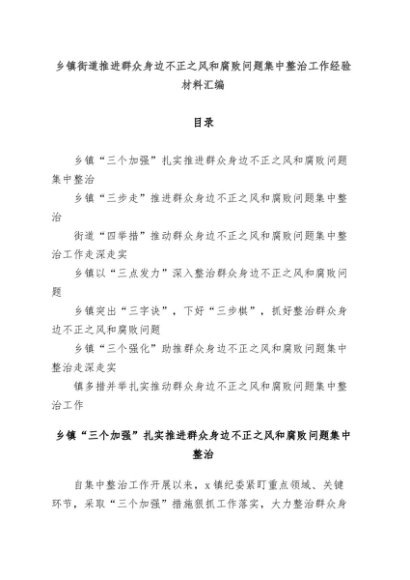 【七哥公文】2024年:乡镇街道推进群众身边不正之风和腐败问题集中整治工作经验材料汇编+更多免费公文+VX:QiGeGongWen2024