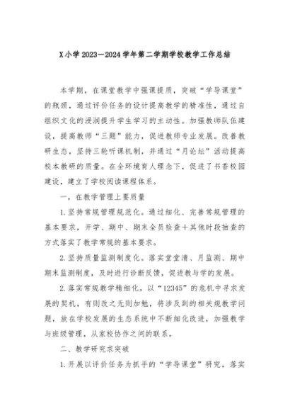 【七哥公文】2024年:X小学2023-2024学年第二学期学校教学工作总结+更多免费公文+VX:QiGeGongWen2024