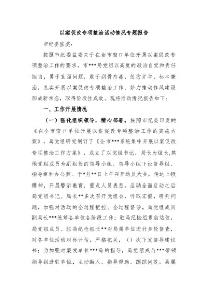 / 【七哥公文】2024年:以案促改专项整治活动情况专题报告+更多免费公文+VX:QiGeGongWen2024