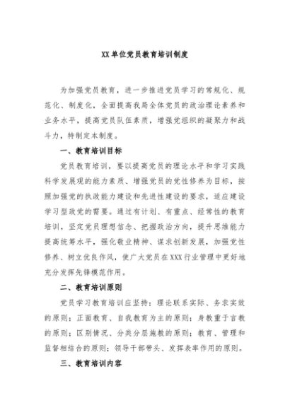 【七哥公文】2024年:XX单位党员教育培训制度+更多免费公文+VX:QiGeGongWen2024