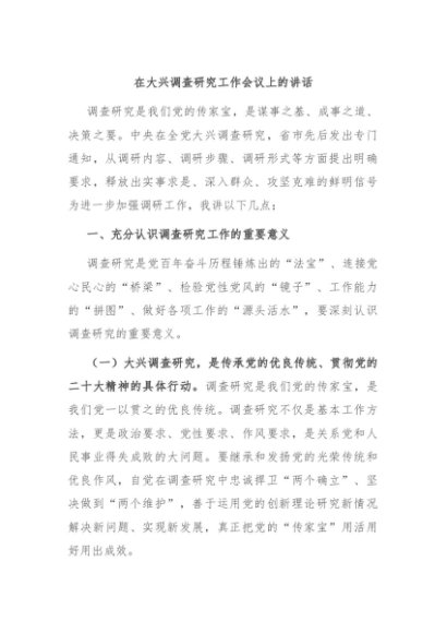 / 【七哥公文】2024年:在大兴调查研究工作会议上的讲话+更多免费公文+VX:QiGeGongWen2024