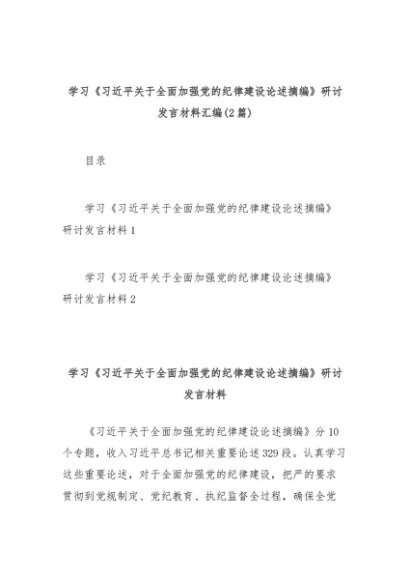 【七哥公文】2024年:(2篇)学习《习近平关于全面加强党的纪律建设论述摘编》研讨发言材料汇编+更多免费公文+VX:QiGeGongWen2024