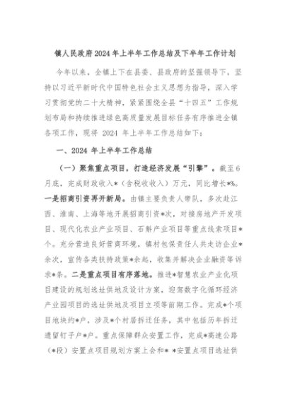 【七哥公文】2024年:镇人民政府2024年上半年工作总结及下半年工作计划+更多免费公文+VX:QiGeGongWen2024