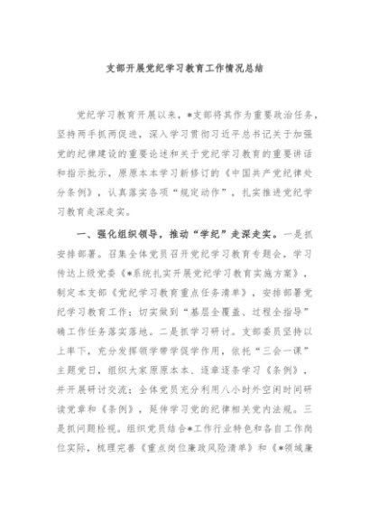 / 【七哥公文】2024年:支部开展党纪学习教育工作情况总结+更多免费公文+VX:QiGeGongWen2024