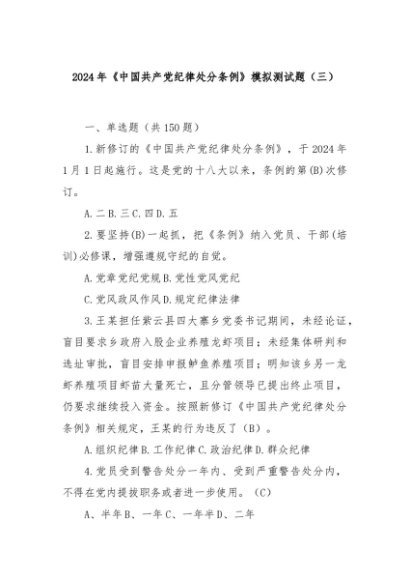 【七哥公文】2024年:2024年《中国共产党纪律处分条例》模拟测试题(三)(含答案)+更多免费公文+VX:QiGeGongWen2024