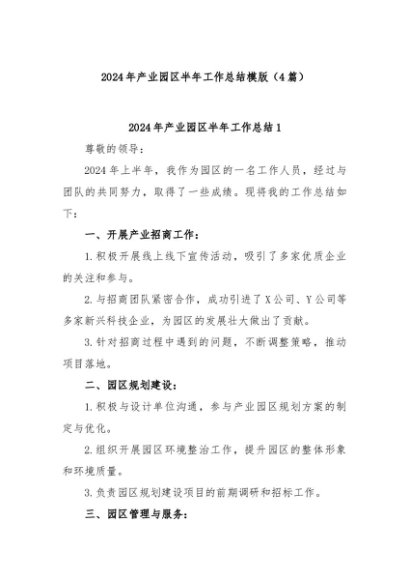 / 【七哥公文】2024年:(4篇)2024年产业园区半年工作总结模版+更多免费公文+VX:QiGeGongWen2024