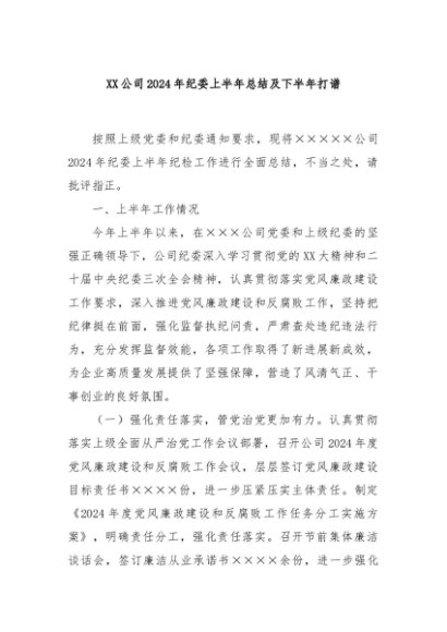 / 【七哥公文】2024年:XX公司2024年纪委上半年总结及下半年打谱+更多免费公文+VX:QiGeGongWen2024