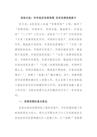 / 【七哥公文】2024年:经验交流:科学规范党建领题 促进党建效能提升+更多免费公文+VX:QiGeGongWen2024