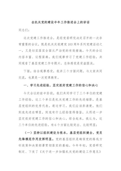 / 【七哥公文】2024年:在机关党的建设半年工作推进会上的讲话+更多免费公文+VX:QiGeGongWen2024