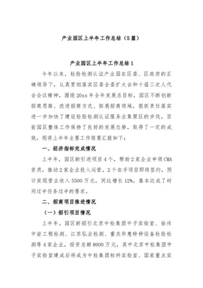 / 【七哥公文】2024年:(5篇)产业园区上半年工作总结+更多免费公文+VX:QiGeGongWen2024