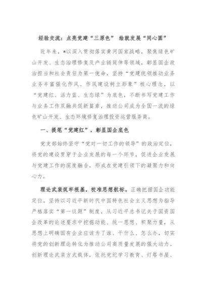 / 【七哥公文】2024年:经验交流:点亮党建“三原色” 绘就发展“同心圆”+更多免费公文+VX:QiGeGongWen2024