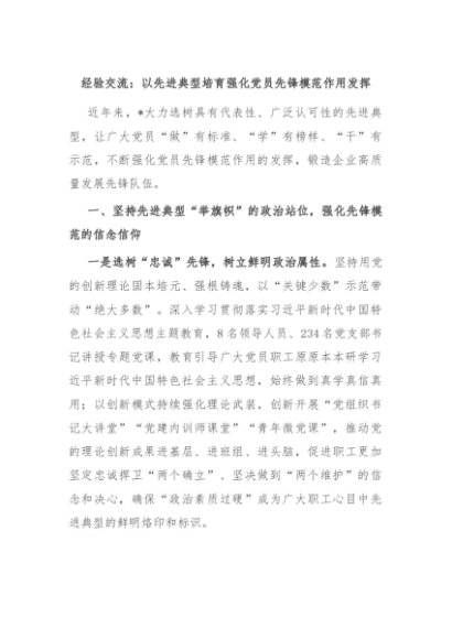 / 【七哥公文】2024年:经验交流:以先进典型培育强化党员先锋模范作用发挥+更多免费公文+VX:QiGeGongWen2024