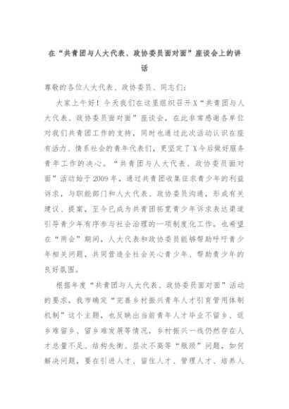 【七哥公文】2024年:在“共青团与人大代表、政协委员面对面”座谈会上的讲话+更多免费公文+VX:QiGeGongWen2024