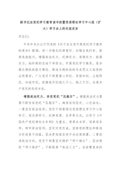 【七哥公文】2024年:副书记在党纪学习教育读书班暨党委理论学习中心组(扩大)学习会上的交流发言+更多免费公文+VX:QiGeGongWen2024