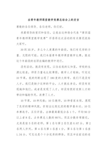 / 【七哥公文】2024年:在青年教师课堂教学竞赛总结会上的发言+更多免费公文+VX:QiGeGongWen2024