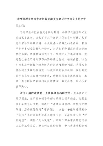 【七哥公文】2024年:在党组理论学习中心组基层减负专题研讨交流会上的发言+更多免费公文+VX:QiGeGongWen2024