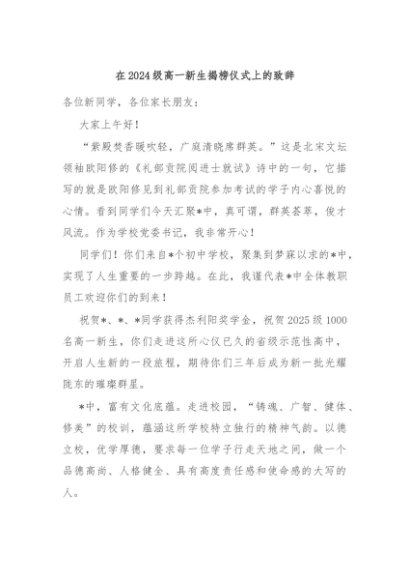 / 【七哥公文】2024年:在2024级高一新生揭榜仪式上的致辞+更多免费公文+VX:QiGeGongWen2024