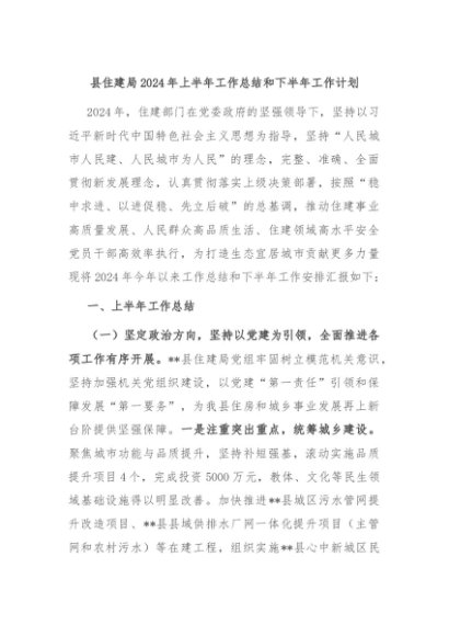 / 【七哥公文】2024年:县住建局2024年上半年工作总结和下半年工作计划+更多免费公文+VX:QiGeGongWen2024