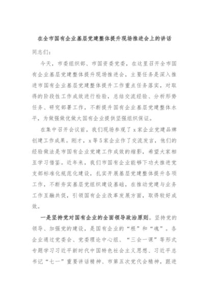 / 【七哥公文】2024年:在全市国有企业基层党建整体提升现场推进会上的讲话+更多免费公文+VX:QiGeGongWen2024