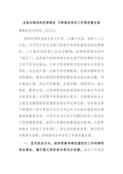 / 【七哥公文】2024年:全面加强党的纪律建设 不断推动信访工作高质量发展+更多免费公文+VX:QiGeGongWen2024