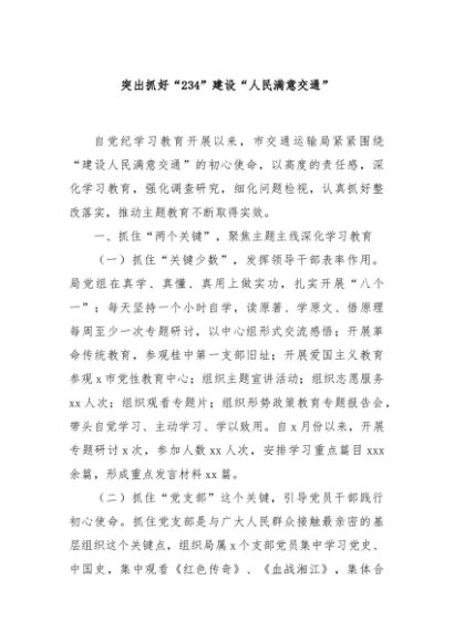 / 【七哥公文】2024年:突出抓好“234”建设“人民满意交通”+更多免费公文+VX:QiGeGongWen2024