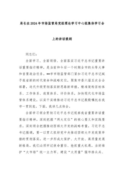 【七哥公文】2024年:局长在2024年市场监管局党组理论学习中心组集体学习会上的讲话提纲+更多免费公文+VX:QiGeGongWen2024