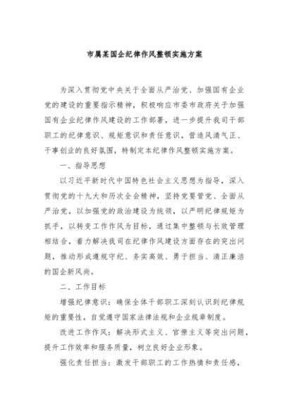/ 【七哥公文】2024年:市属某国企纪律作风整顿实施方案+更多免费公文+VX:QiGeGongWen2024