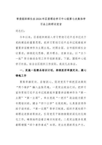 【七哥公文】2024年:常委组织部长在2024年区委理论学习中心组第七次集体学习会上的研讨发言+更多免费公文+VX:QiGeGongWen2024