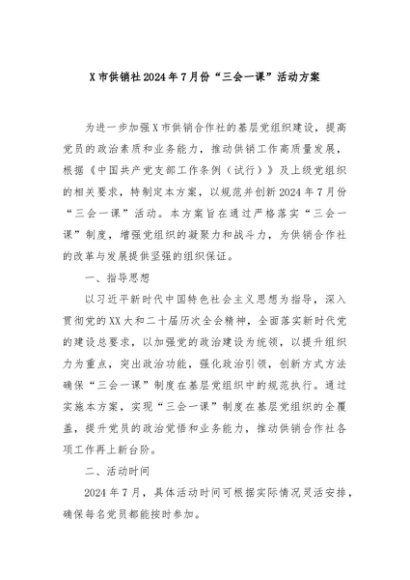 / 【七哥公文】2024年:X市供销社2024年7月份“三会一课”活动方案+更多免费公文+VX:QiGeGongWen2024