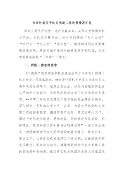 / 【七哥公文】2024年:市审计局关于机关党建工作进展情况汇报+更多免费公文+VX:QiGeGongWen2024