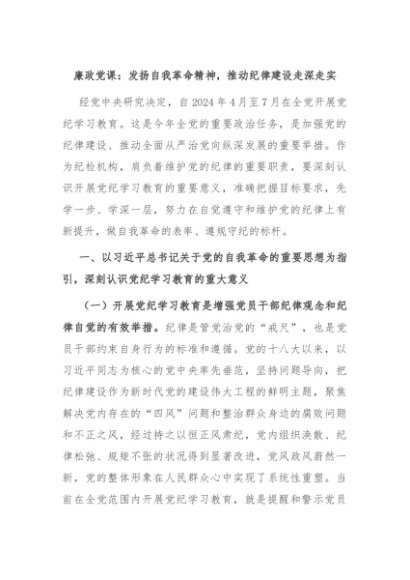 / 【七哥公文】2024年:廉政党课:发扬自我革命精神,推动纪律建设走深走实+更多免费公文+VX:QiGeGongWen2024