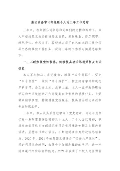 / 【七哥公文】2024年:集团法务审计部经理个人近三年工作总结+更多免费公文+VX:QiGeGongWen2024