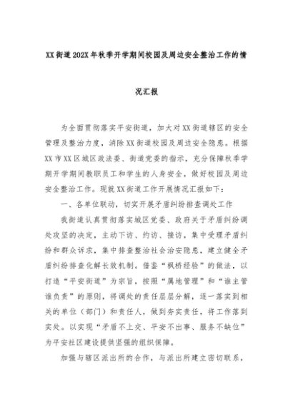 【七哥公文】2024年:XX街道202X年秋季开学期间校园及周边安全整治工作的情况汇报+更多免费公文+VX:QiGeGongWen2024