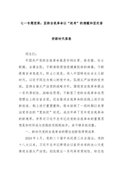 【七哥公文】2024年:七一专题党课:坚持自我革命以“赶考”的清醒和坚定答好新时代答卷+更多免费公文+VX:QiGeGongWen2024